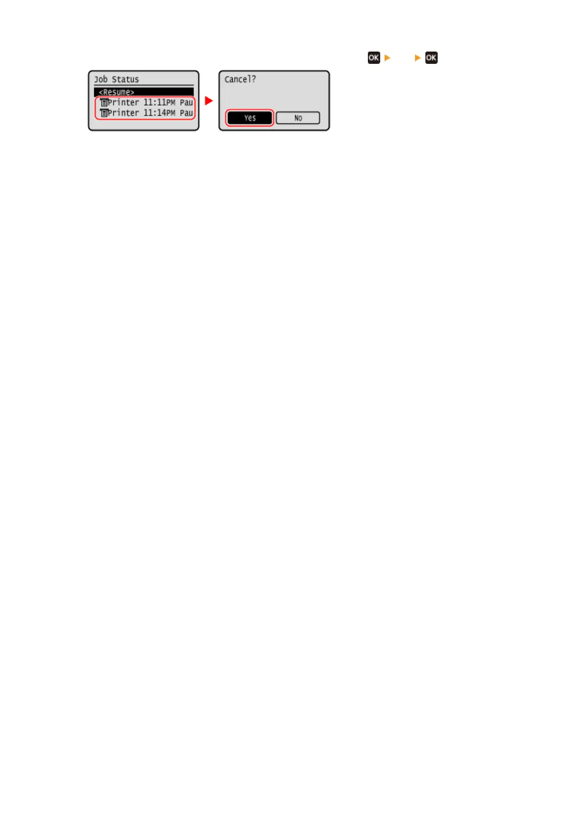 If the job list screen is displayed, select the job to cancel, and press [Yes] .
