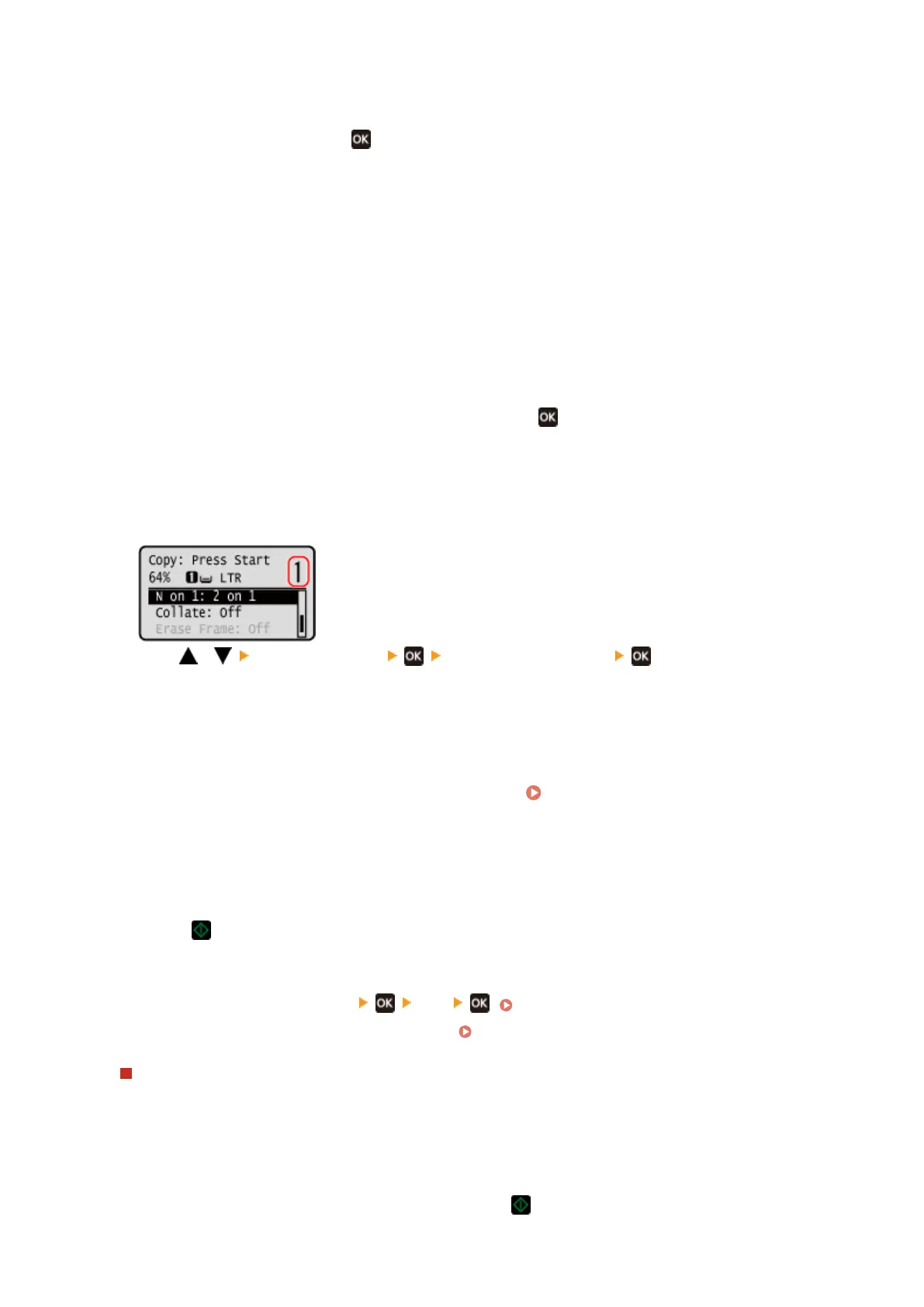 Press / [Number of Copies] set the number of copies , or use the numeric keys to