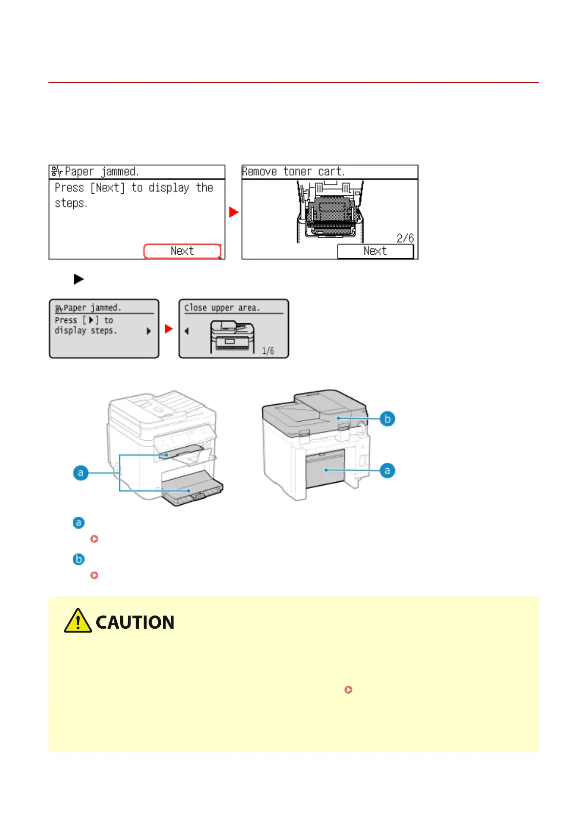 Press [Next], and follow the displayed instructions on how to clear the paper jam.