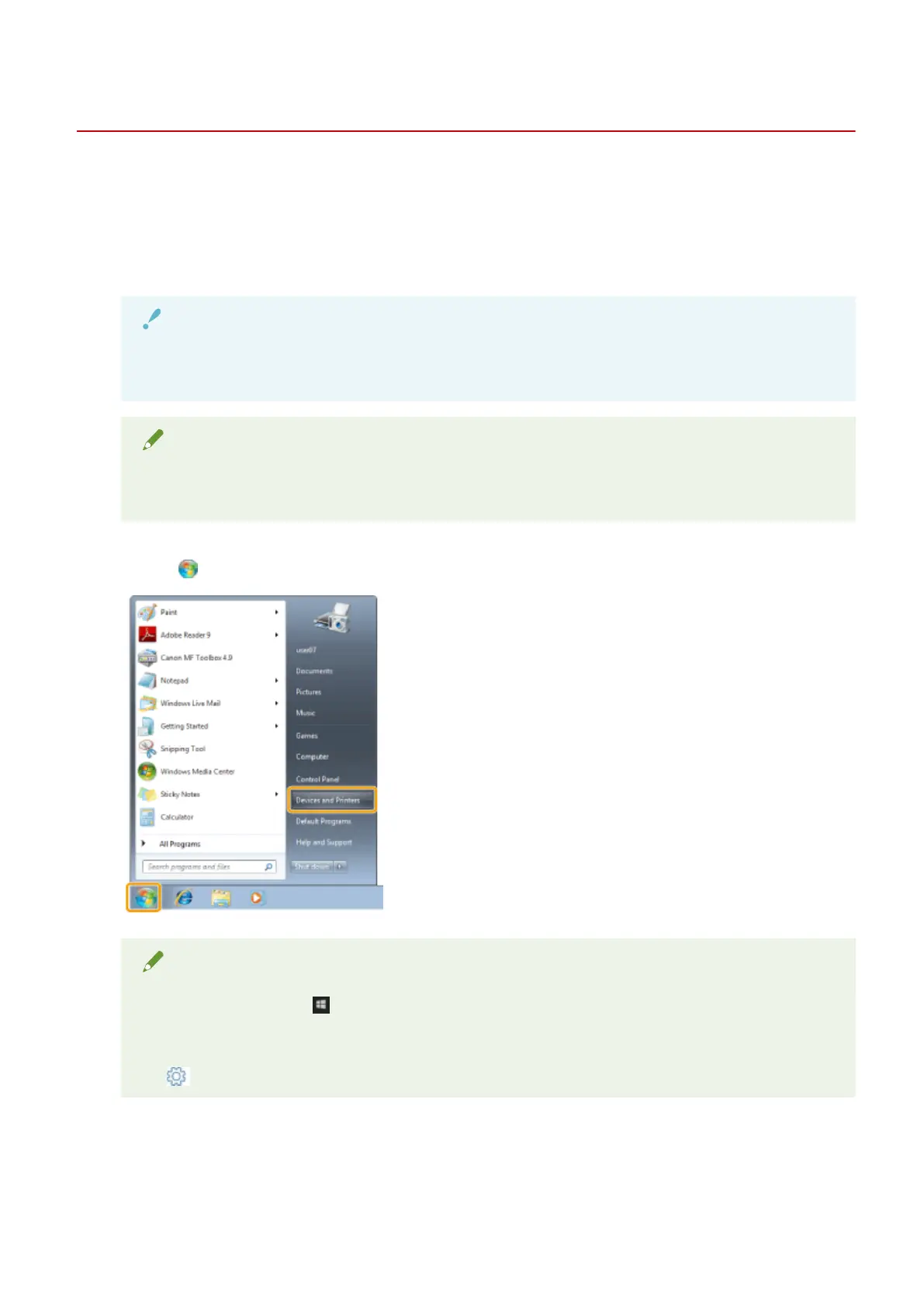 ] (Settings) -> [Control Panel] -> [Devices and printers].