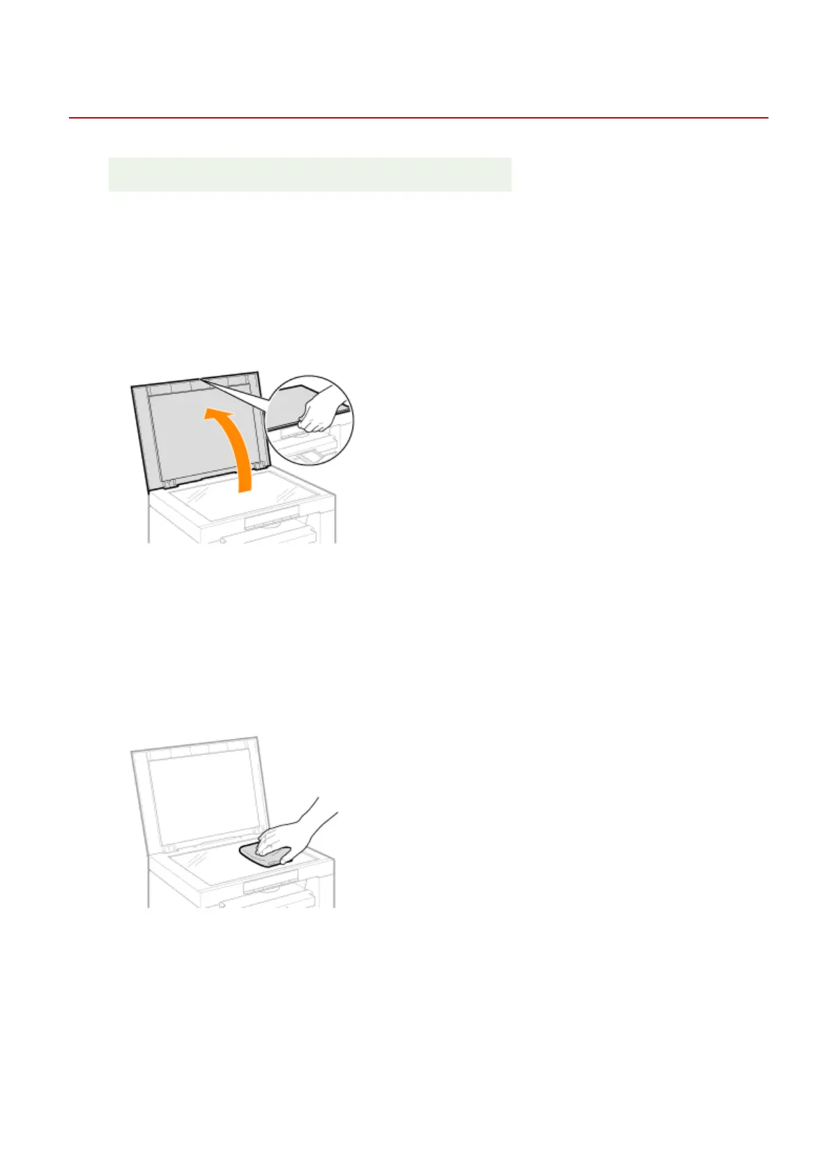 Follow the steps in the procedure below to clean the platen glass and the under surface of the platen glass