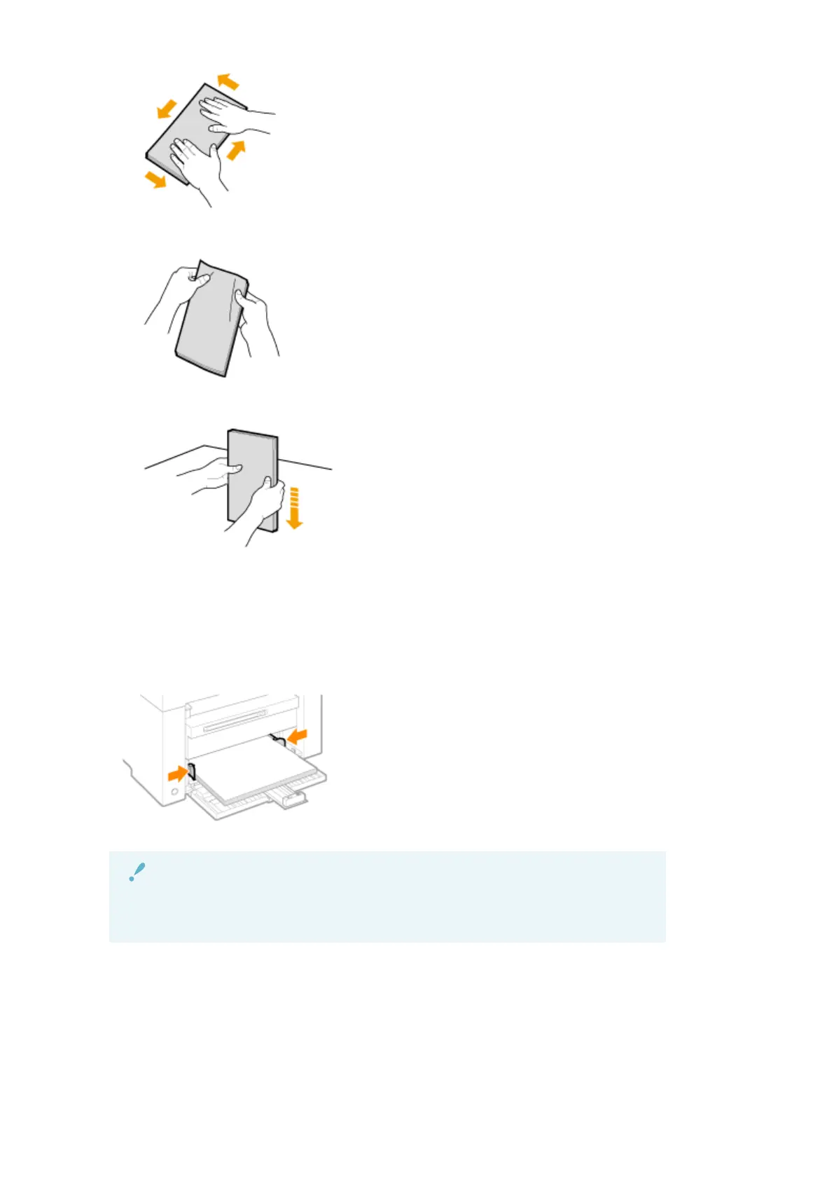 (5) Gently load the envelopes into the paper cassette with the print side face up, until the edge of the envelope