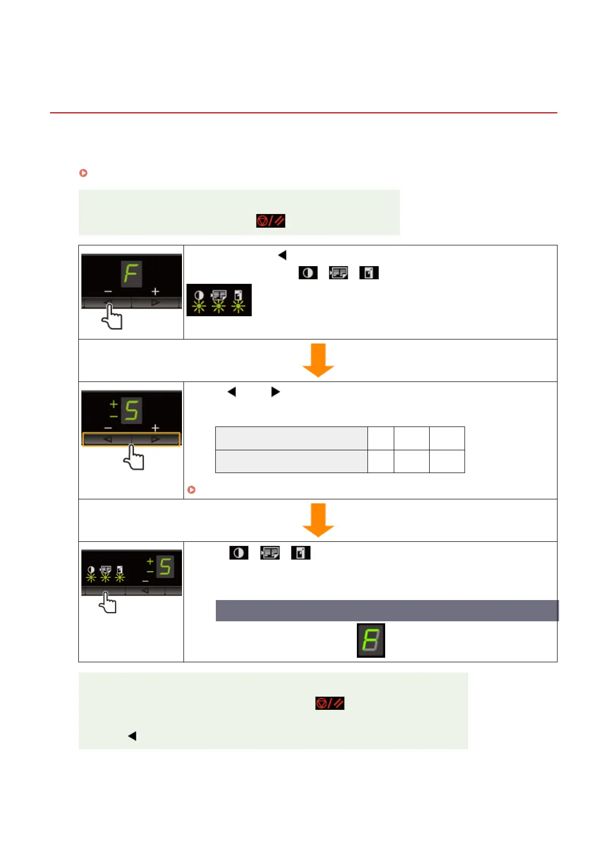 After this, "F" is on, and [ ] (Copy setting key) blinks.