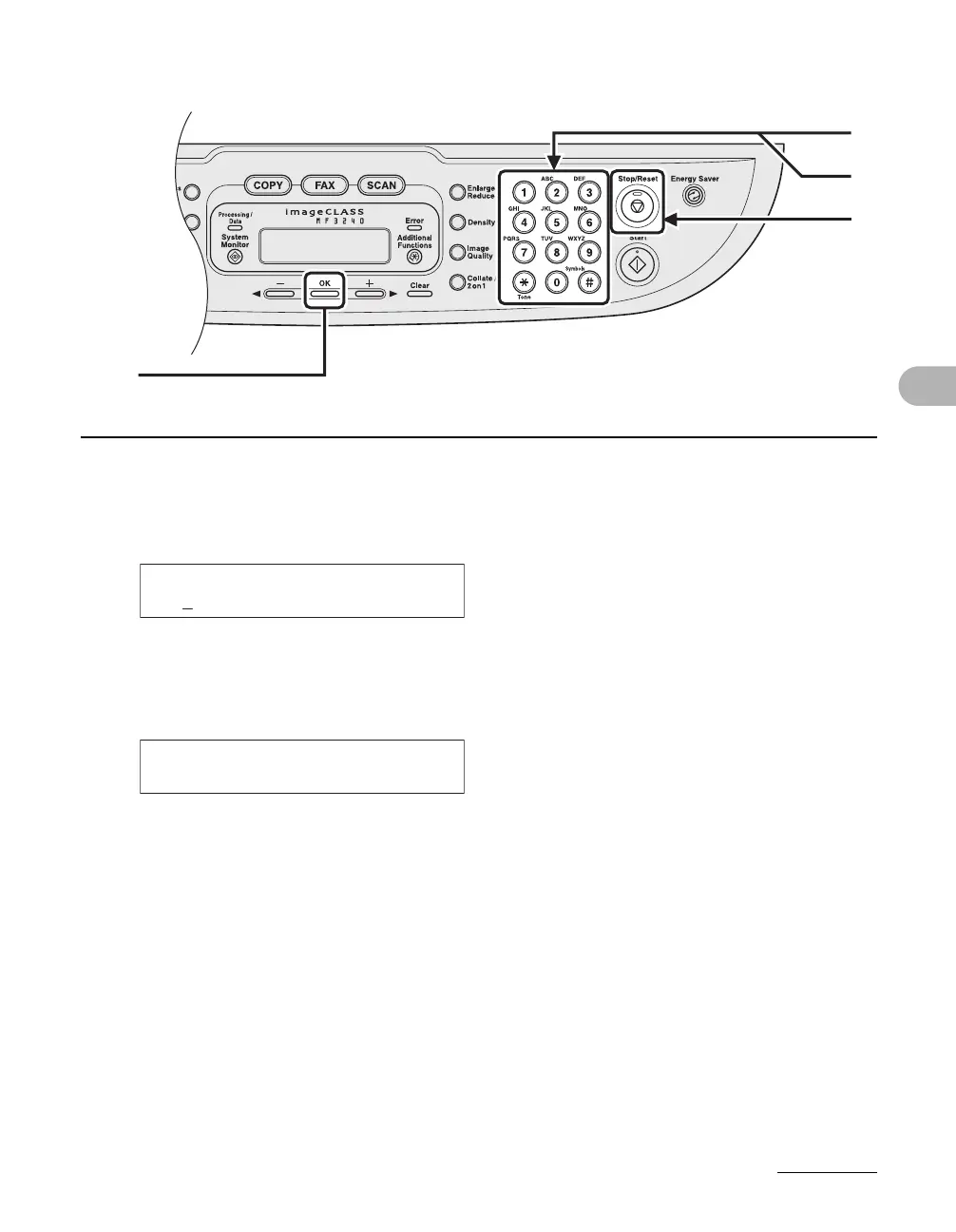 6 Enter the fax number you register (max. 50 digits, including spaces and