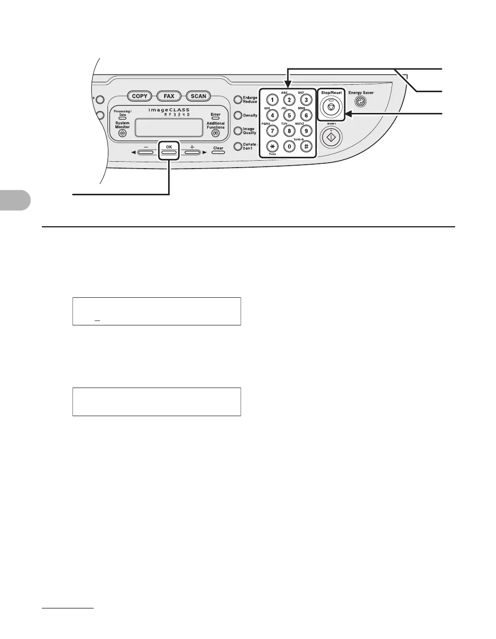 6 Enter the fax number you register (max. 50 digits, including spaces and
