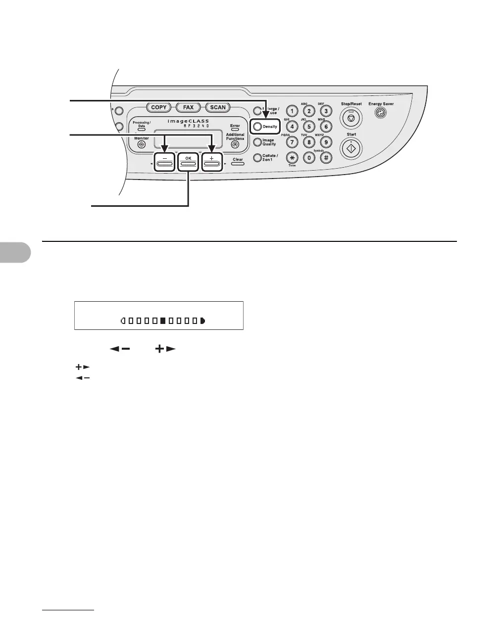 2 Press [ ] or [ ] to adjust the copy density, then press [OK].