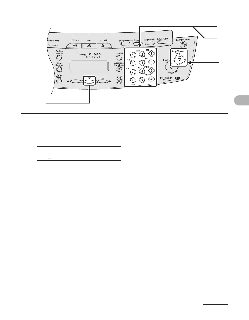 6 Enter the fax number you register (max. 50 digits, including spaces and