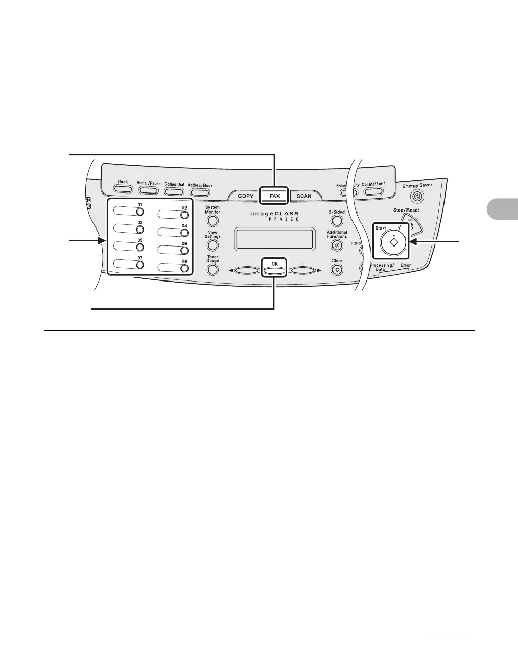4 Press the desired one-touch speed or group dialing key (01 to 08).