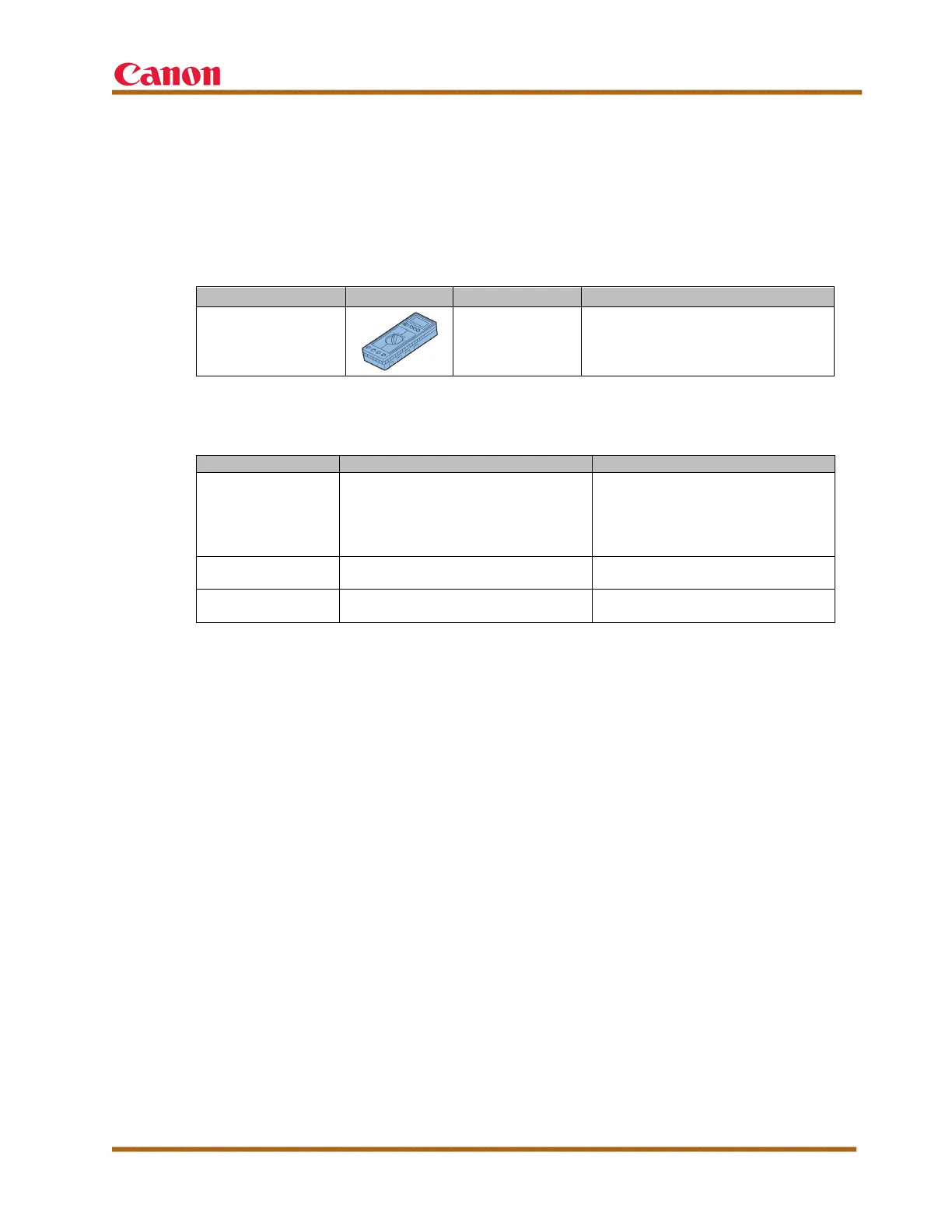Table 8 – Special Tools List