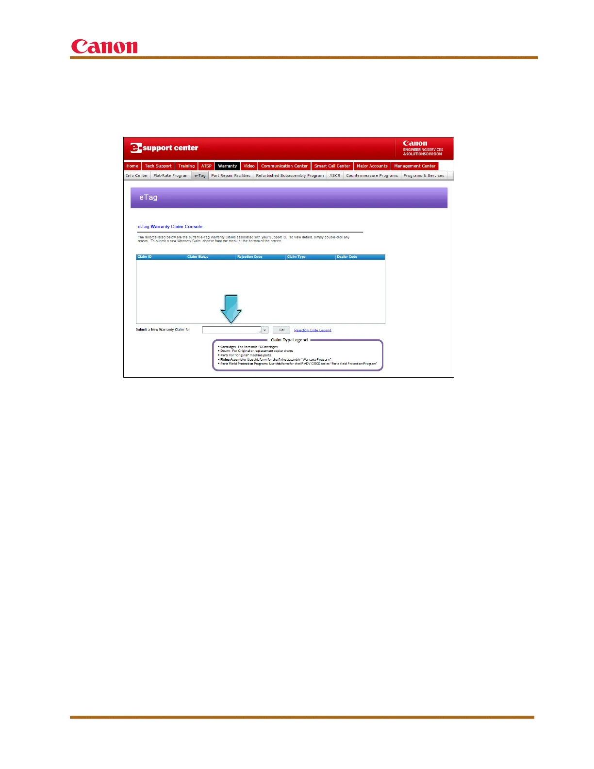 provided on the bottom of the e-Tag warranty claim form, accompanied by a