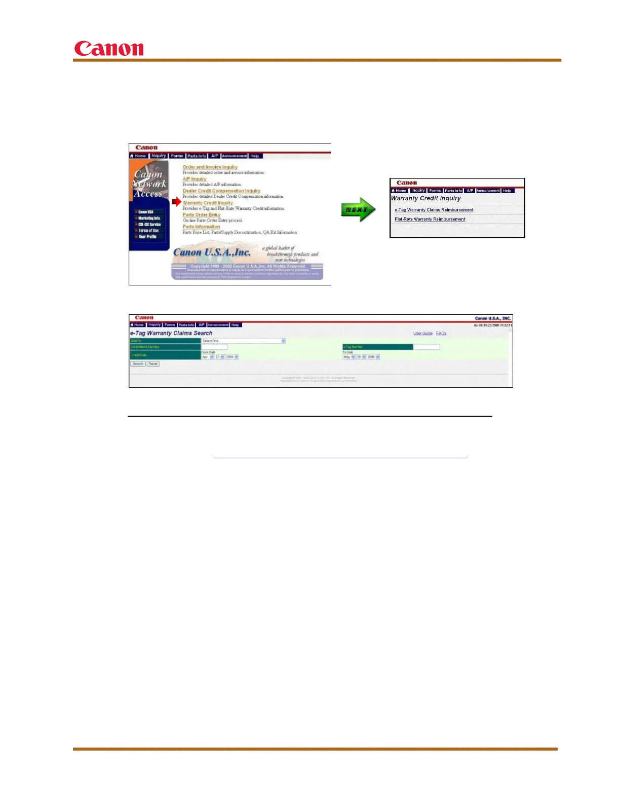 On the CNA Web site, select “Warranty Credit Inquiry,” and then select