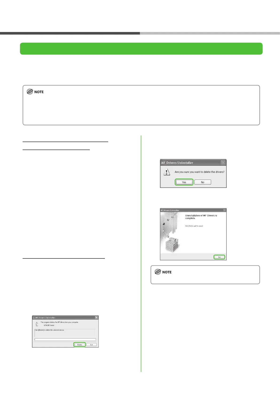 For uninstallation, rst uninstall the MF Toolbox, and then the MF drivers.