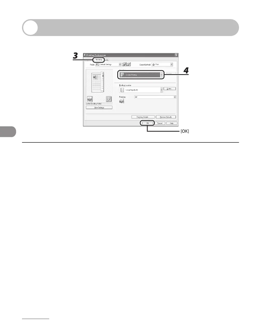 4 For [Print Style], select [2-sided Printing], then click [OK].