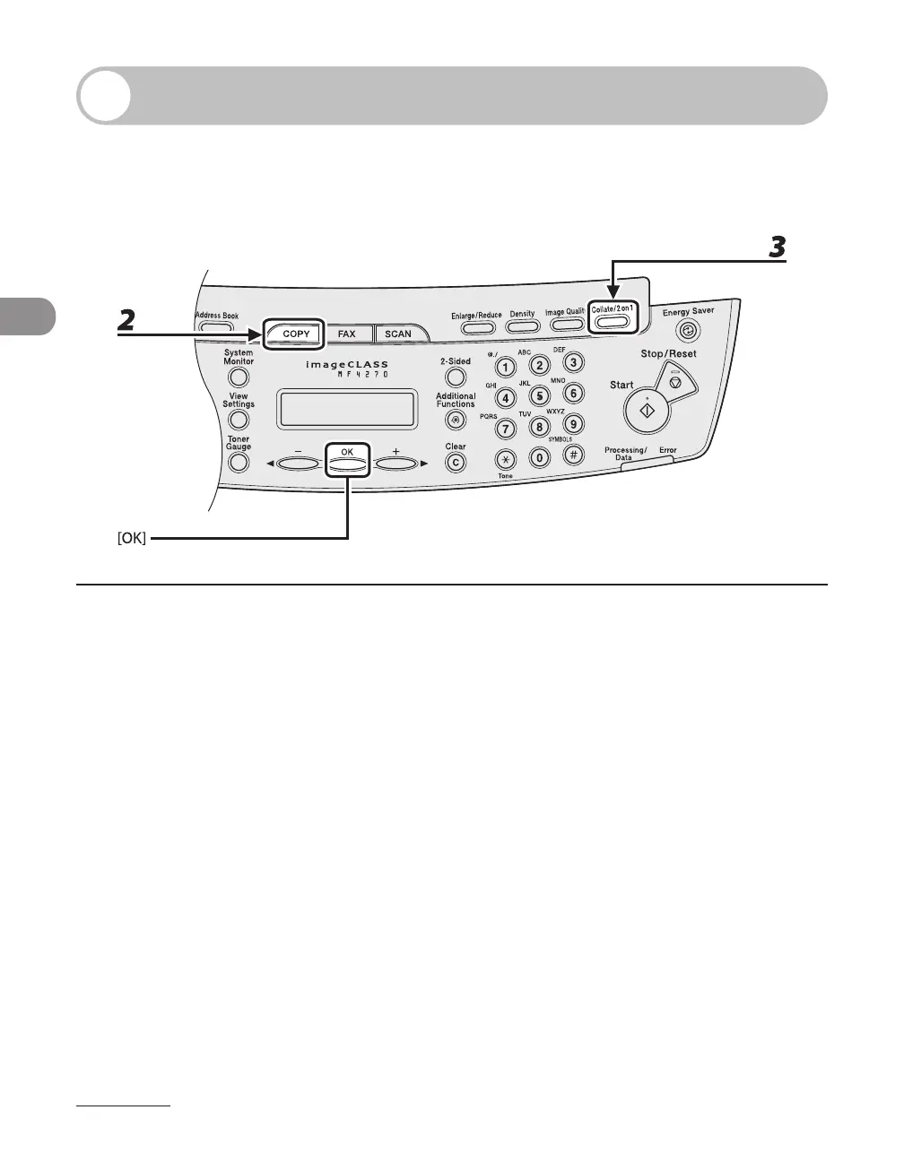 3 Press [Collate/2 on 1] repeatedly to select <2 ON 1>, then press [OK].
