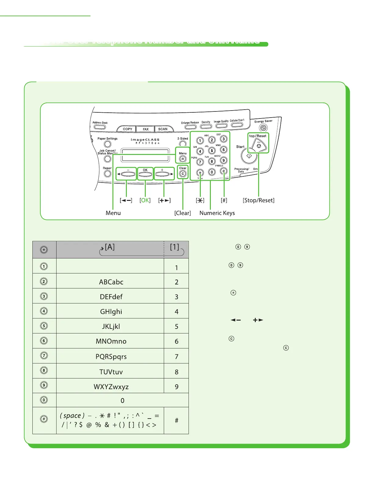 Use the keys below to enter information in the machine.