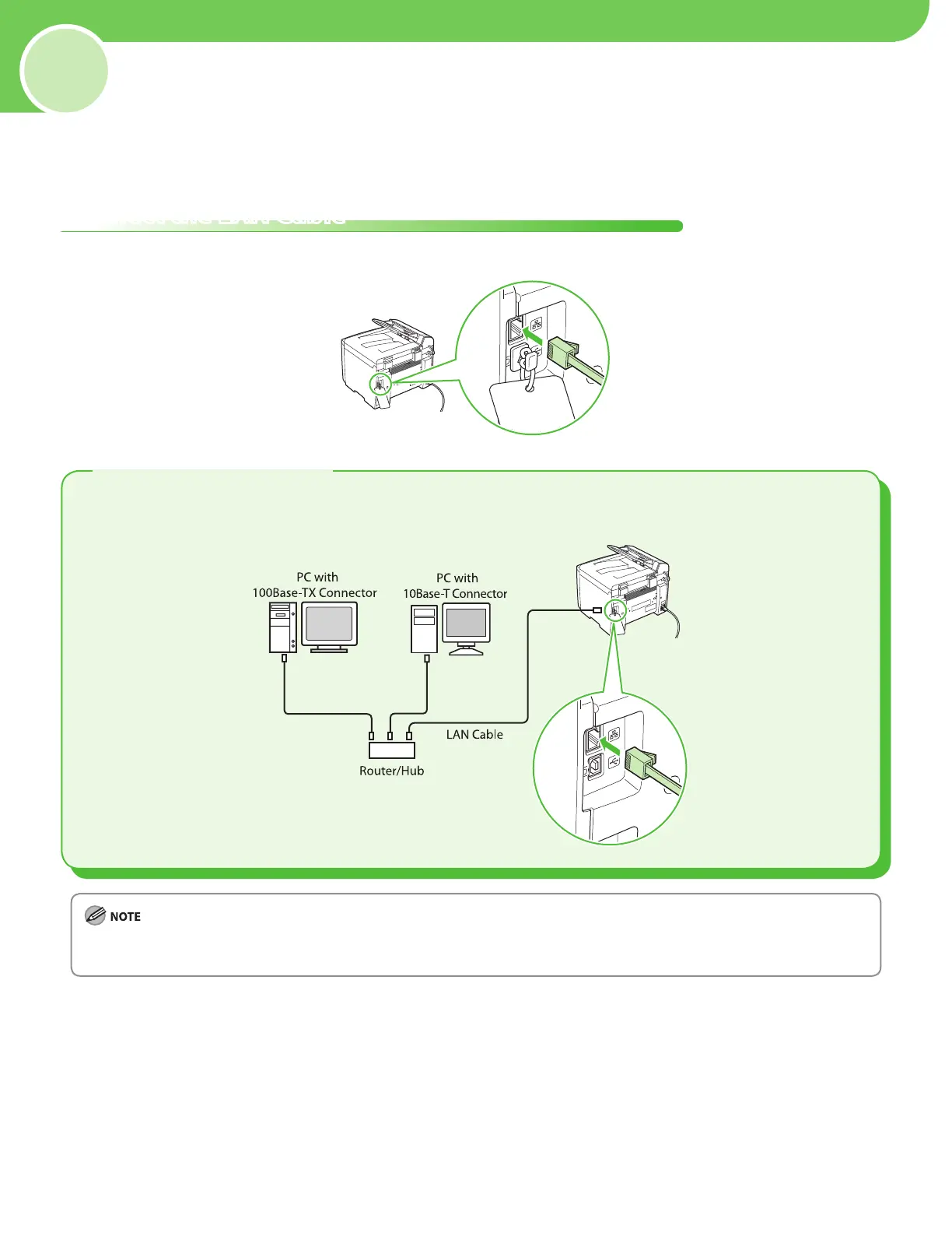A category 5 or greater twisted pair LAN cable is compatible with the machine. Connect one end to the
