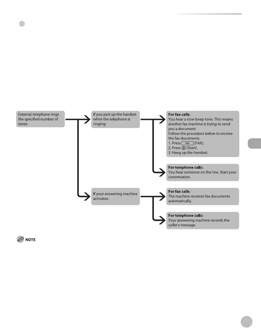 In this mode, the machine receives documents automatically for fax calls and your answering machine records