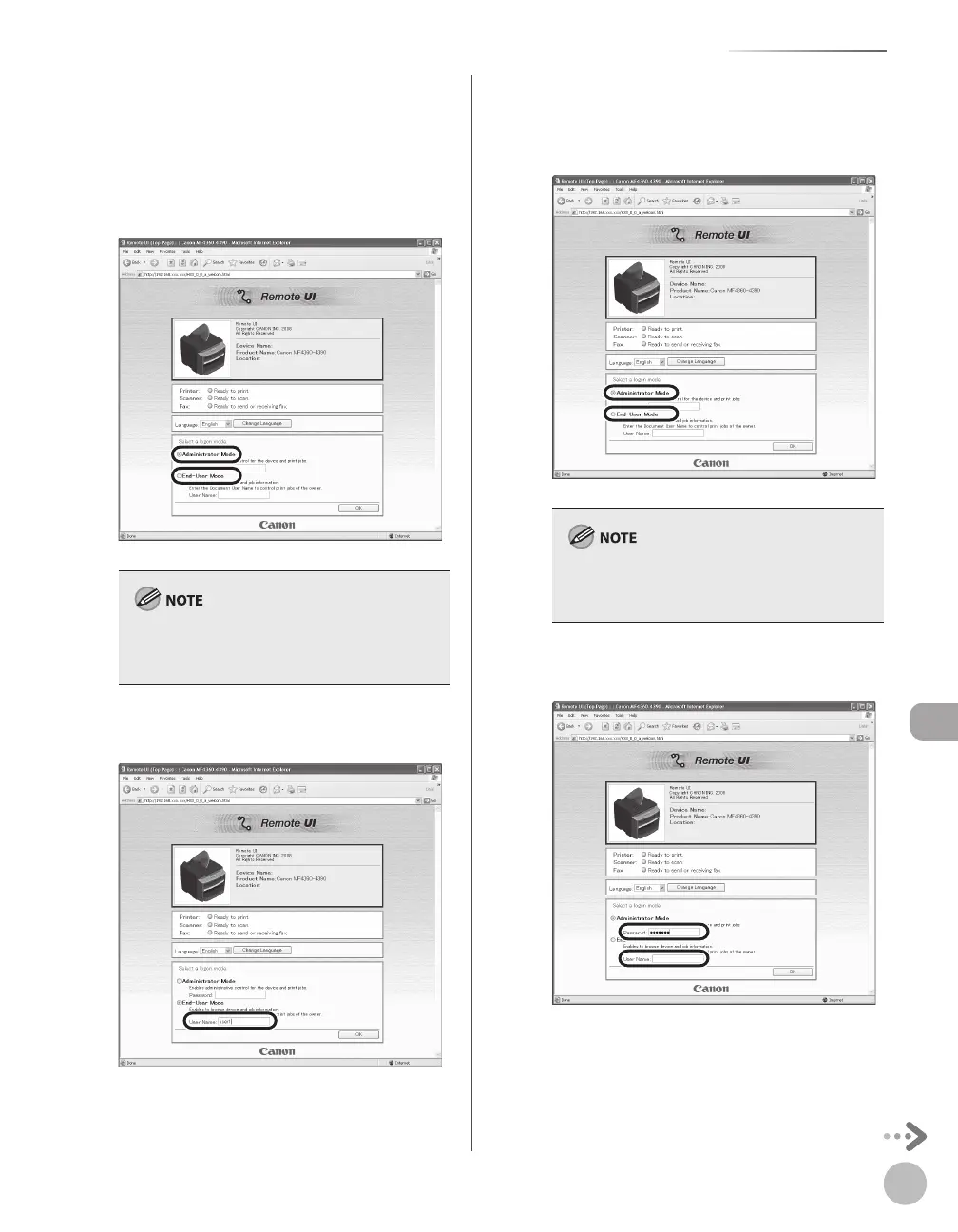 [Administrator Mode]. Selecting [End-User Mode],
