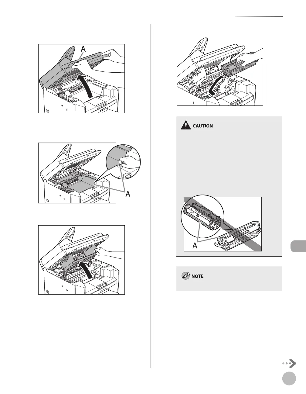 Do not open the drum protective shutter (A) on