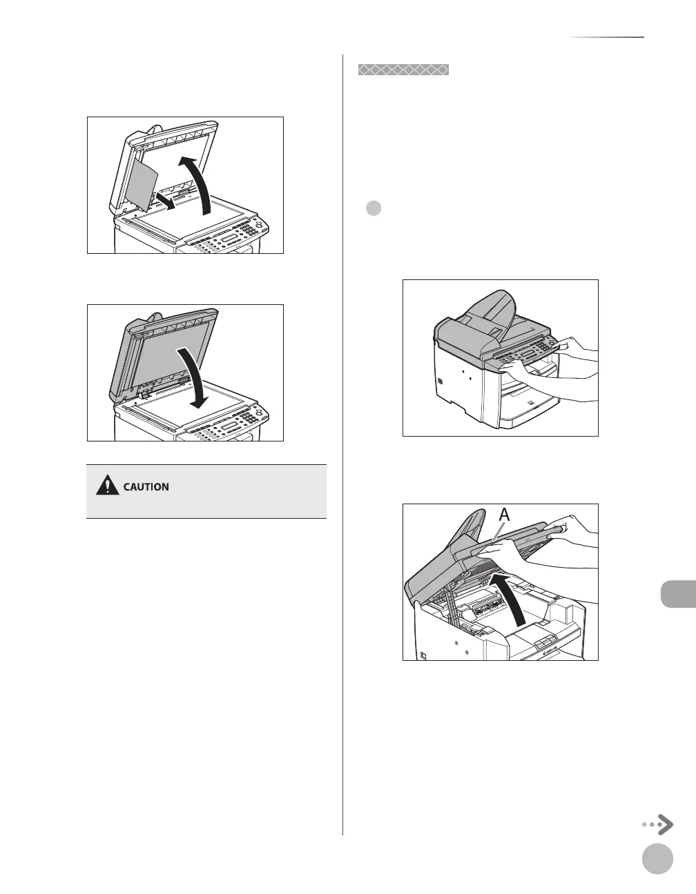 Lift the scanning platform (A) until it is