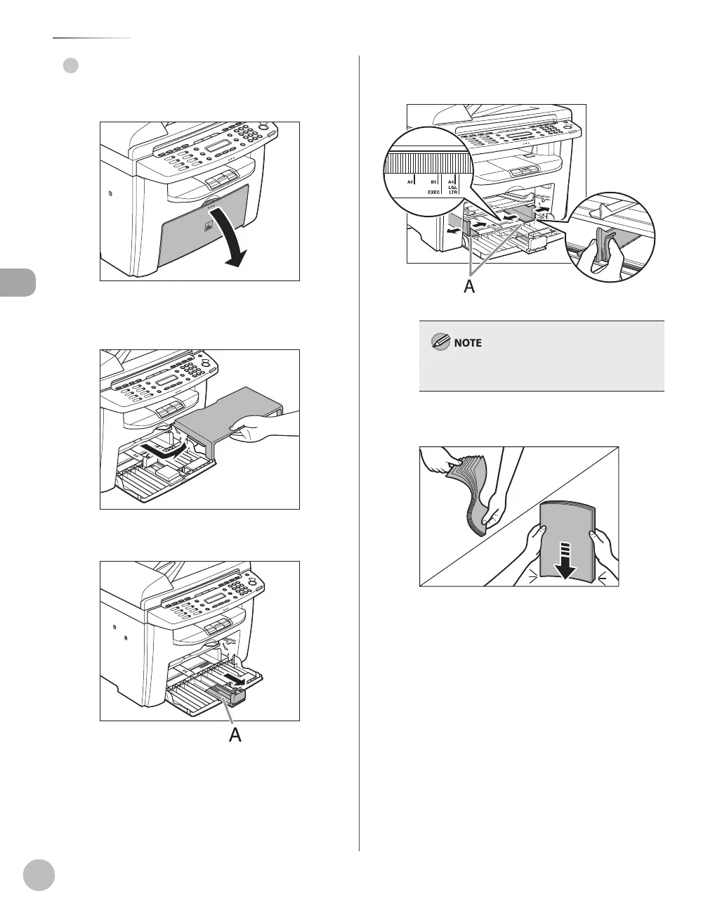 Slide the side paper guides (A) to match