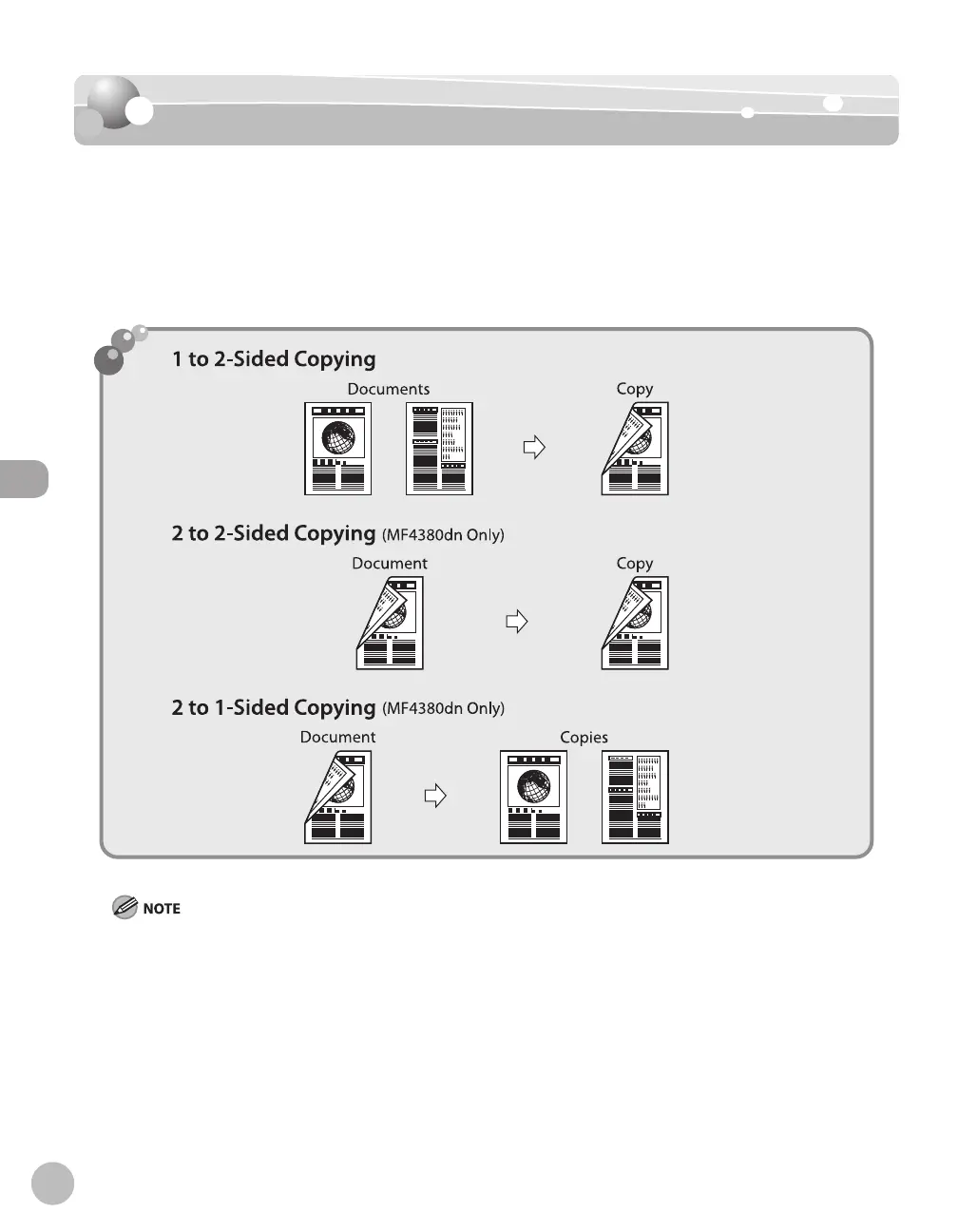 This mode enables you to make 2-sided copies from 1-sided documents. This enables you to