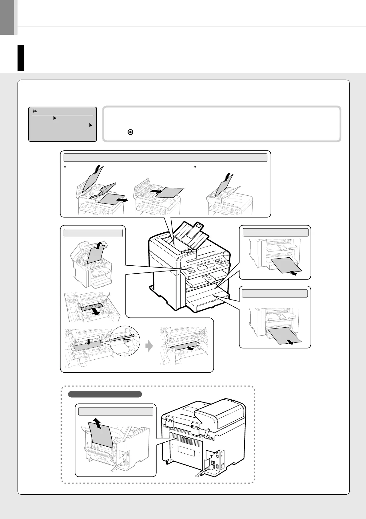 This manual indicates only areas where paper jams occur. For details on the procedures,