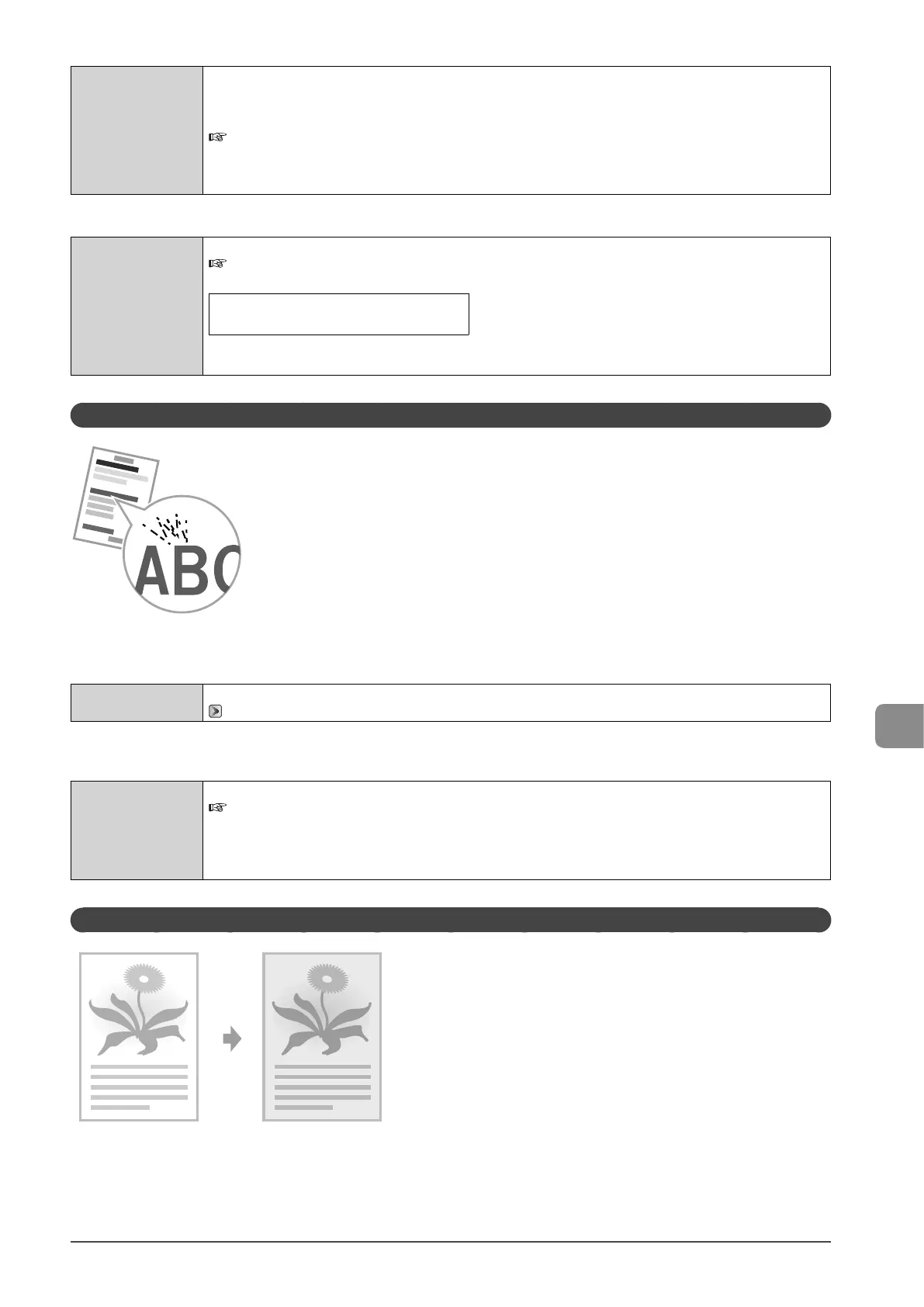 environments), smudge marks of spattering toner may appear.