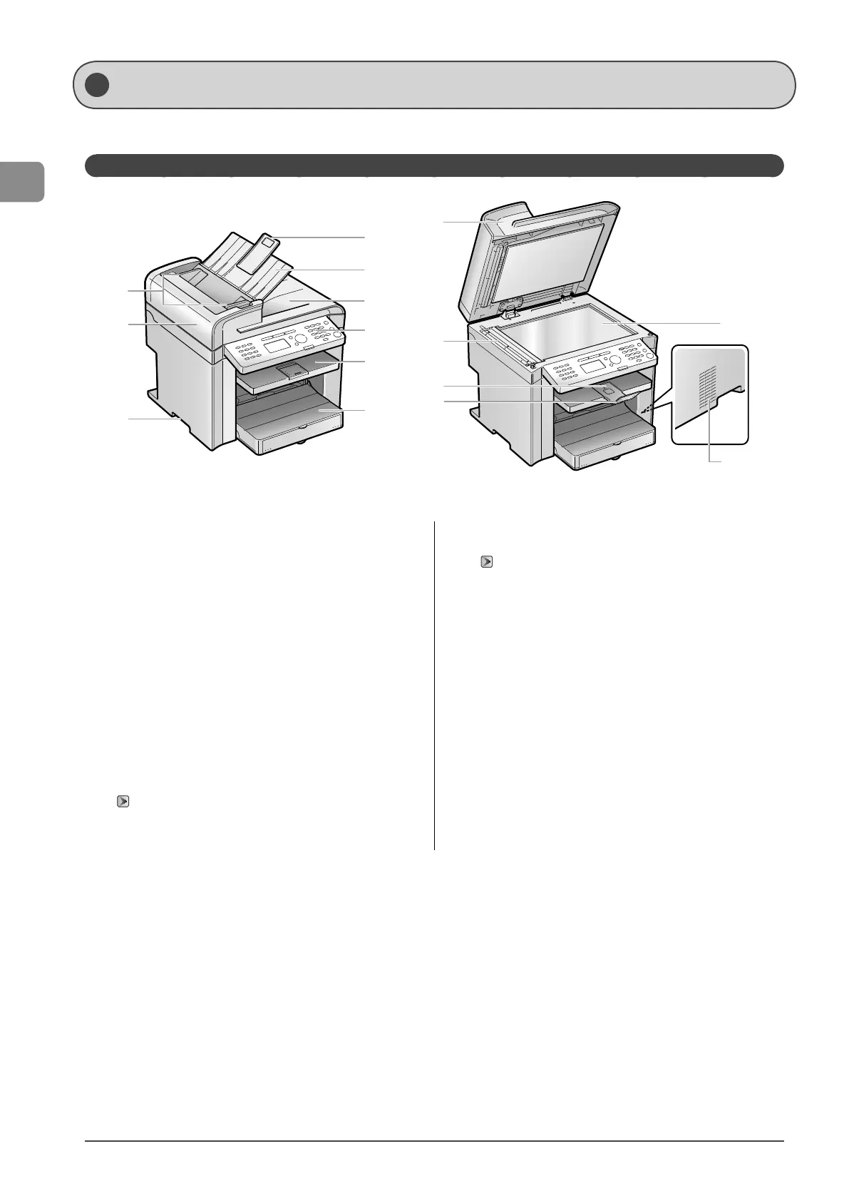 This section describes the parts and functions of the machine.