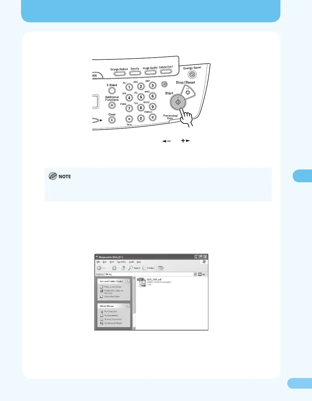 details, see “Scan Settings,” ( P. 5-6) of “Scanning to a USB Memory,” in Chapter 5, “Printing and Scanning,”