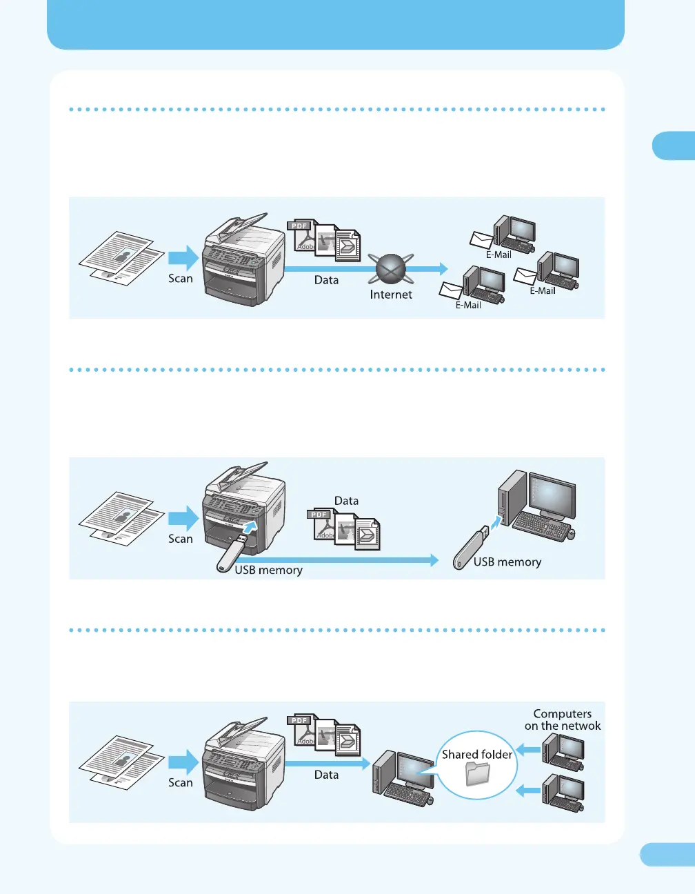 This feature allows you to store a scanned document to a shared folder in a computer on a network.