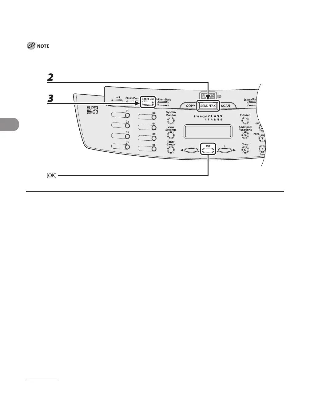 To use this feature, you must register destinations in coded dial code beforehand. (See “Storing/Editing Address