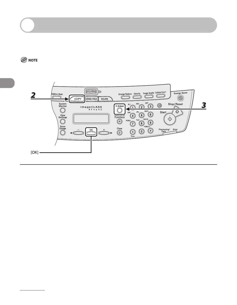 3 Press [2-Sided] repeatedly to select <1 > 2-SIDED>, then press [OK].