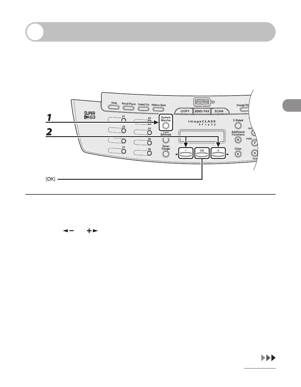 1 Press [System Monitor] repeatedly to select <COPY STATUS>, then press [OK].