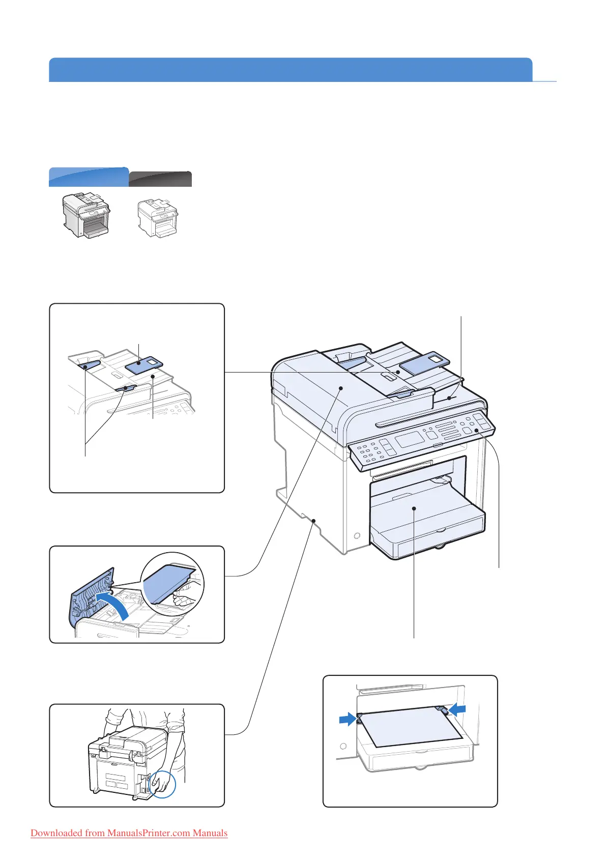 Open this cover to clear paper jams (→P. 95 ).