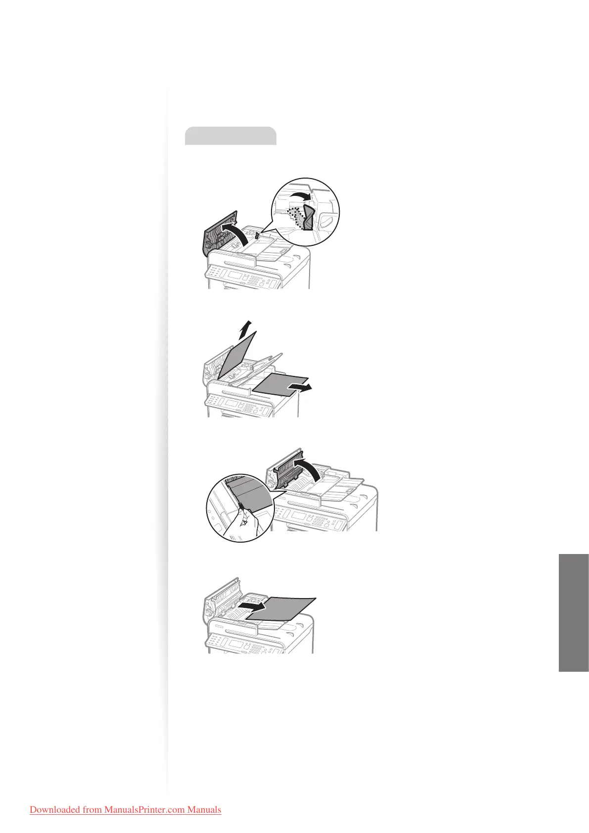 After removing any documents placed in the feeder, follow the procedure below to remove