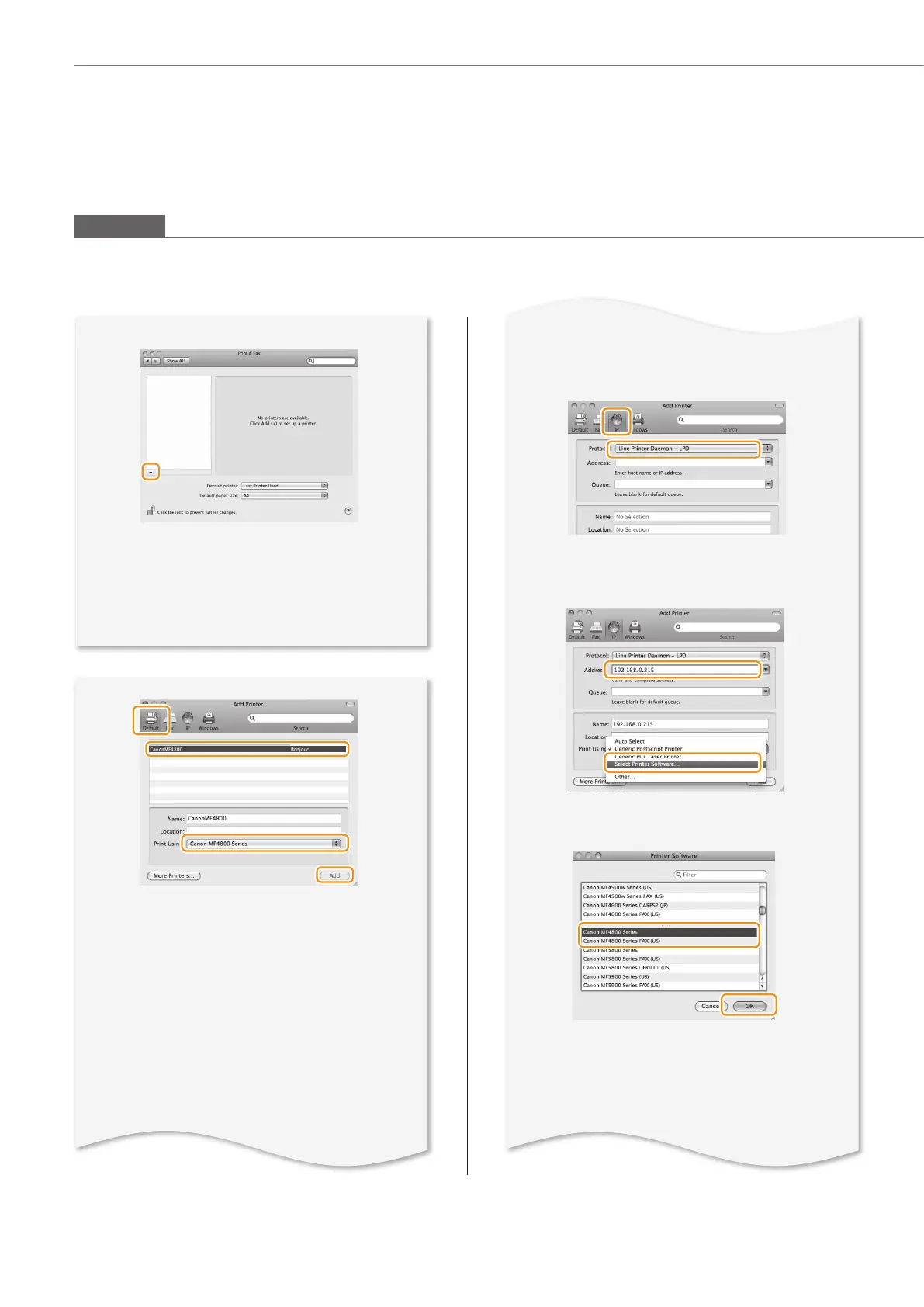 • If you are using Mac OS X 10.5.8, click [+],