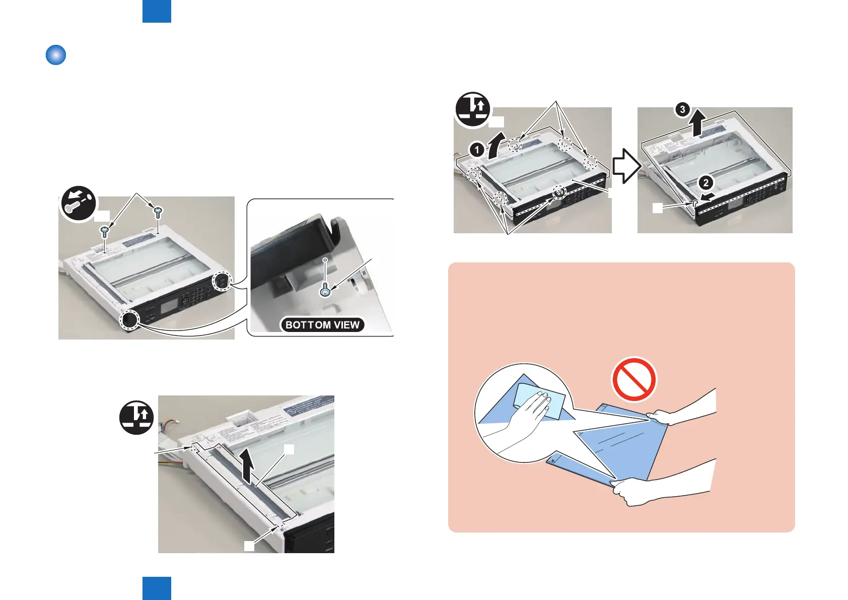 Disassembly/Assembly > Document Exposure/Feeder System > Removing the Copyboard Glass(MF4870dn/MF4830d) > Procedure