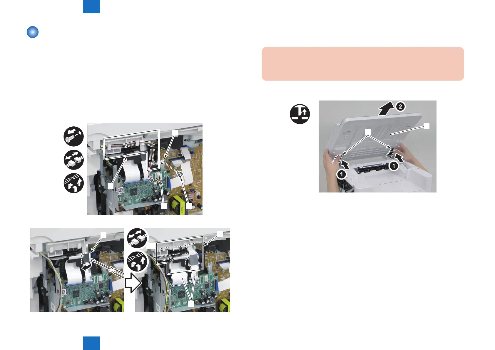 Disassembly/Assembly > Document Exposure/Feeder System > Removing the Copyboard Cover and Reader Unit (D530) > Procedure