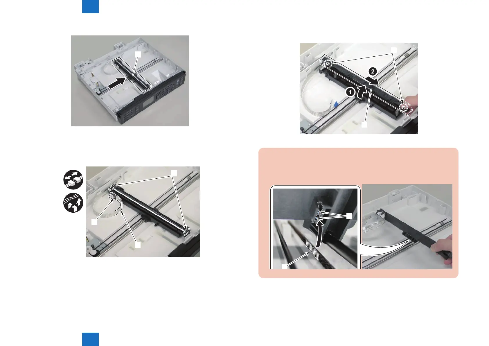 Disassembly/Assembly > Document Exposure/Feeder System > Removing the SADF CIS Unit(MF4780w/MF4770n/MF4750/MF4730) > Procedure