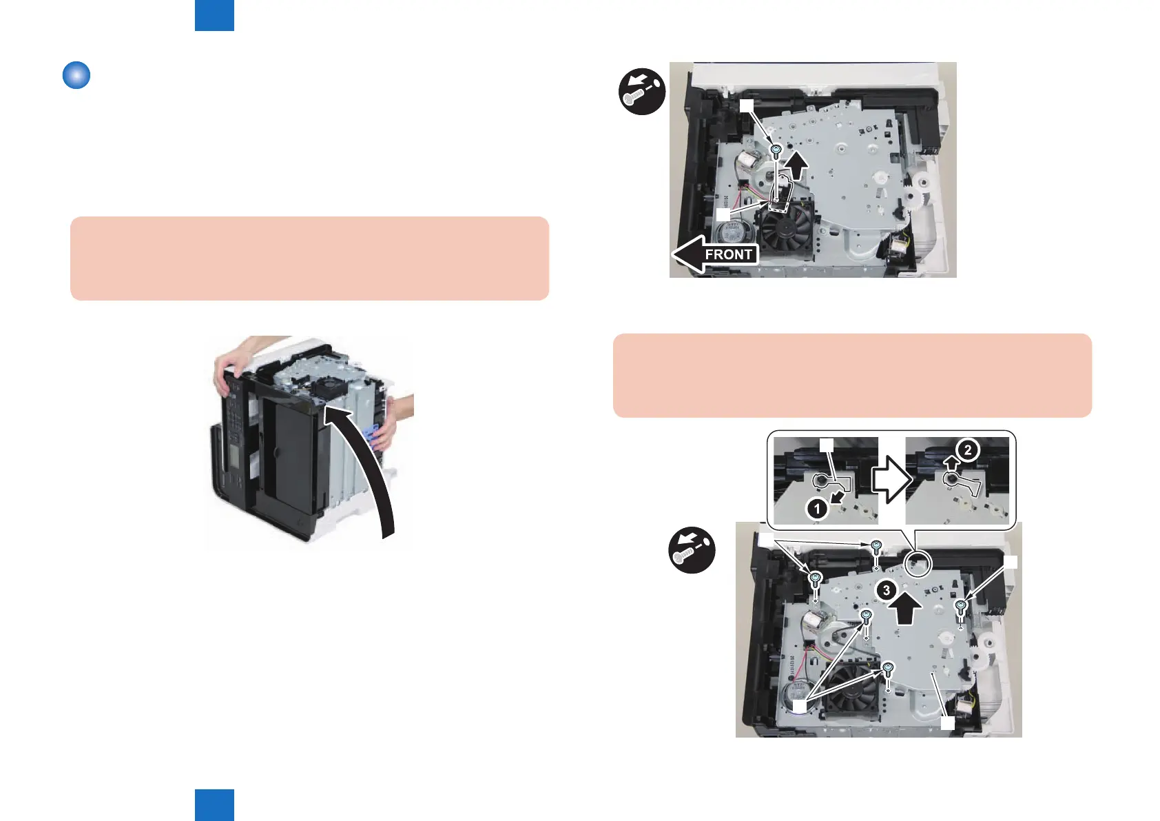 1) Close the reader unit [1] and place the host machine with its left side down.
