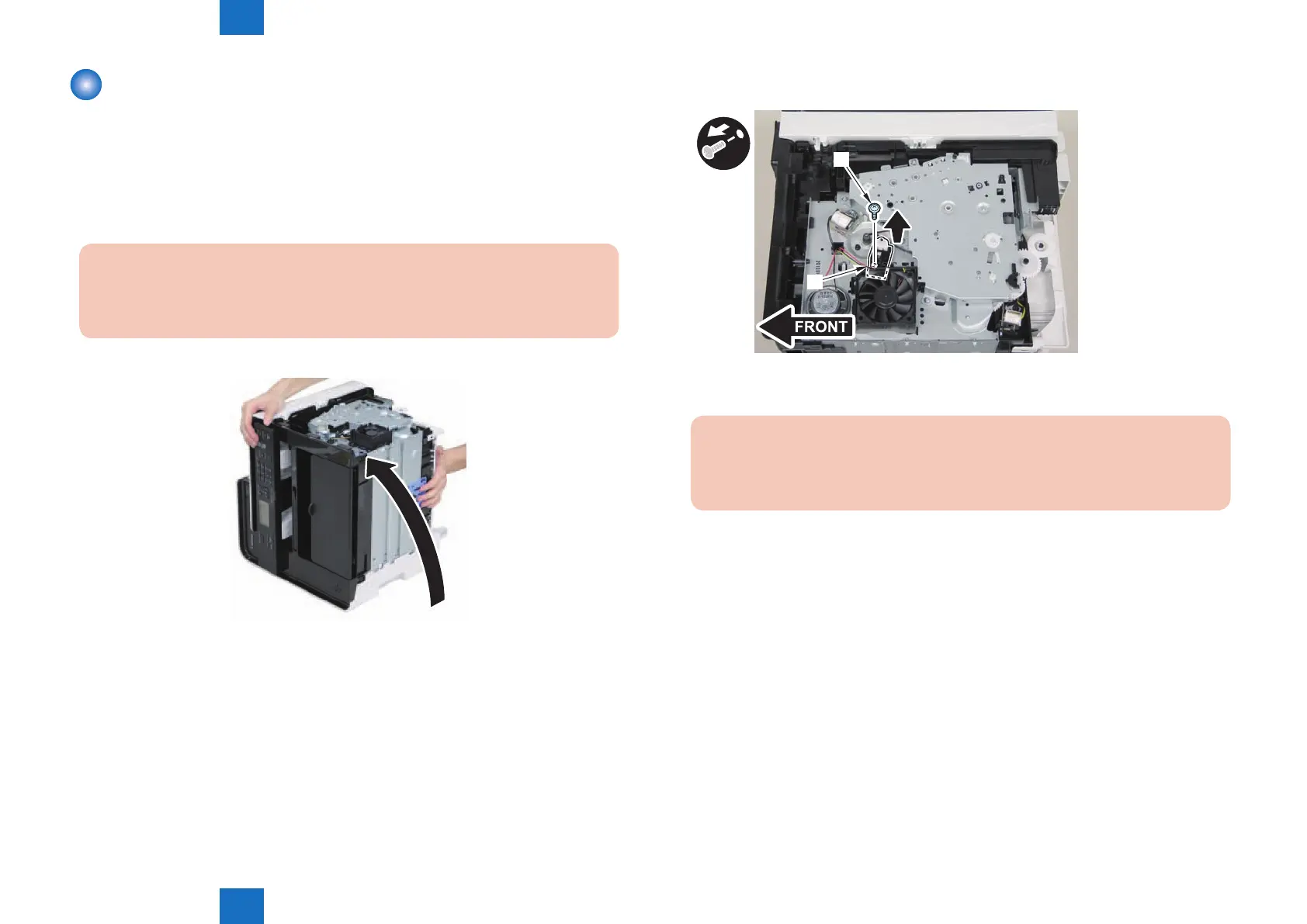 1) Close the reader unit [1] and place the host machine with its left side down.