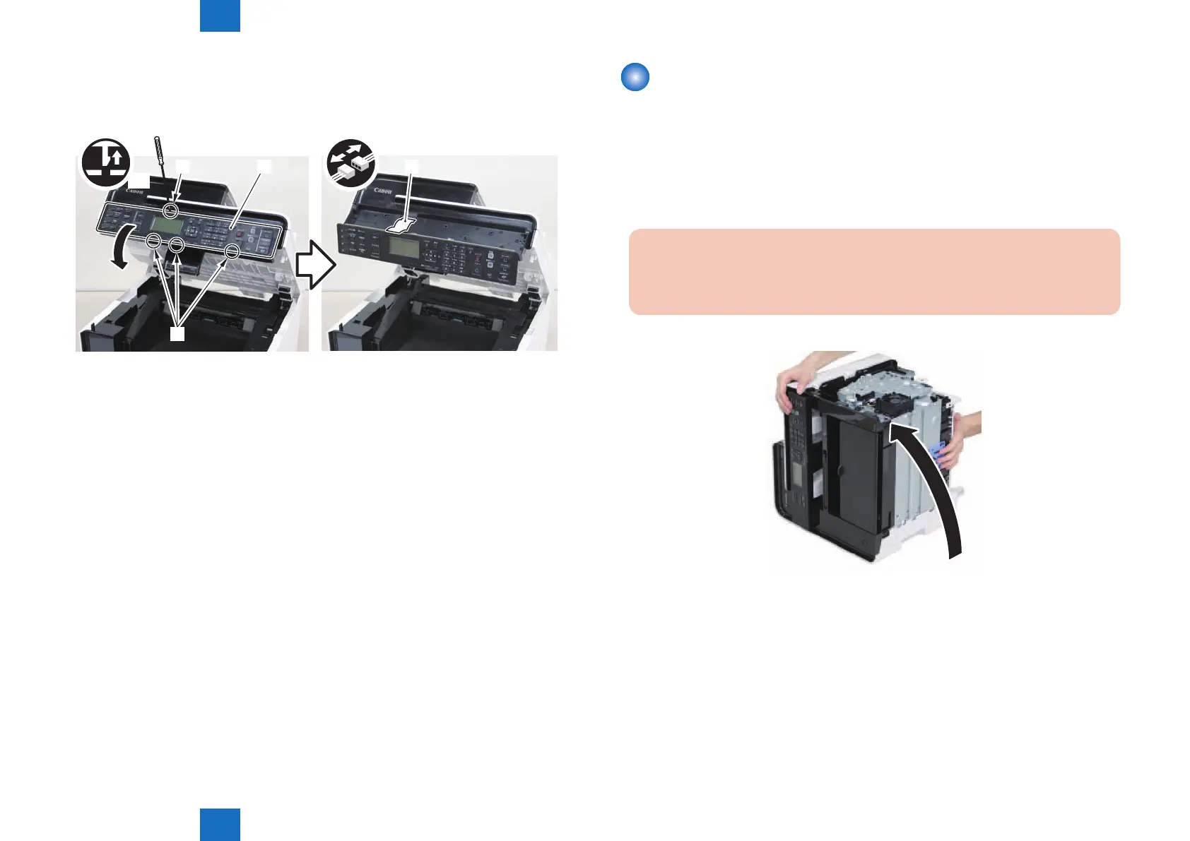 1) Close the reader unit [1] and place the host machine with its left side down.