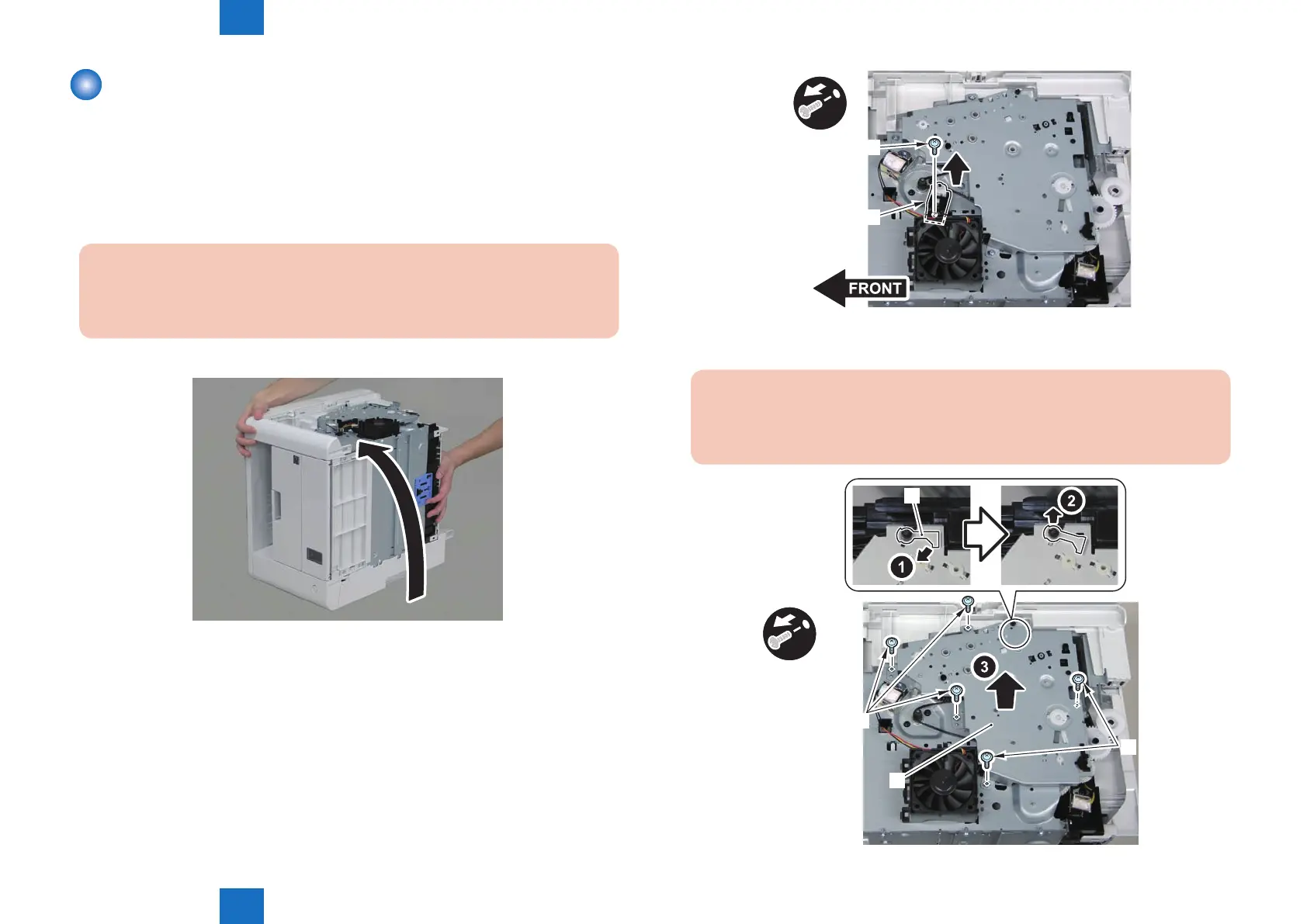 1) Close the reader unit [1] and place the host machine with its left side down.