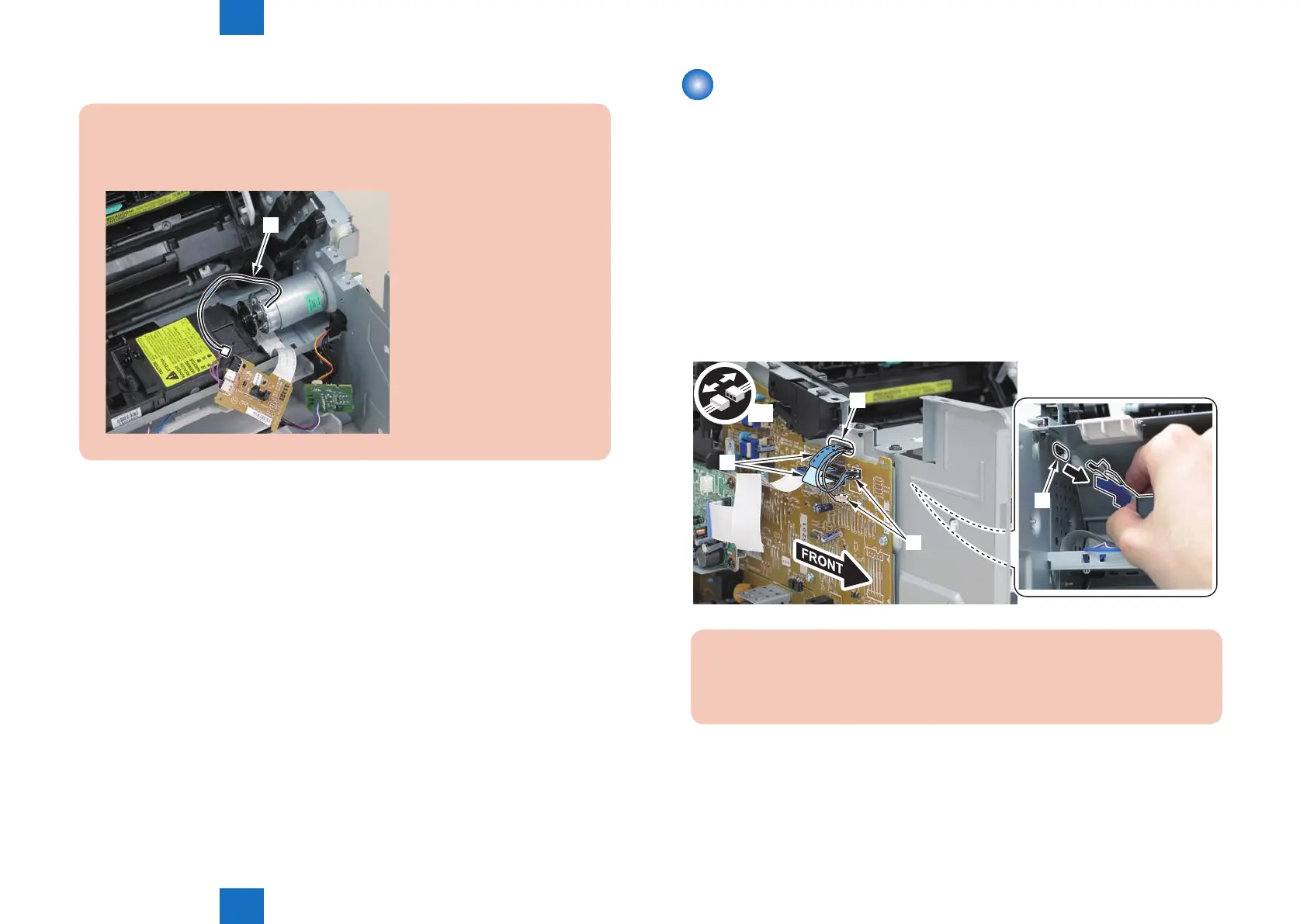 When installing the main motor, be sure to install the harness[1] to the upper side of
