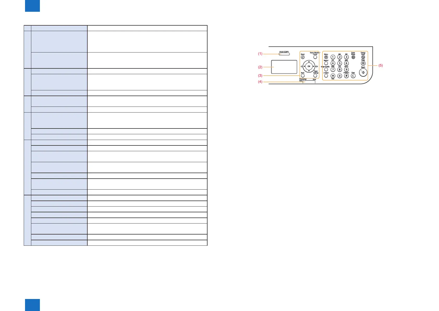 (1) Mode switching keys Press to switch the mode to copy or scan.