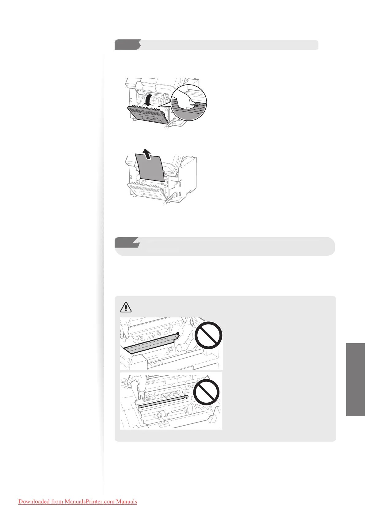 Check and remove the jammed paper in the rear cover.