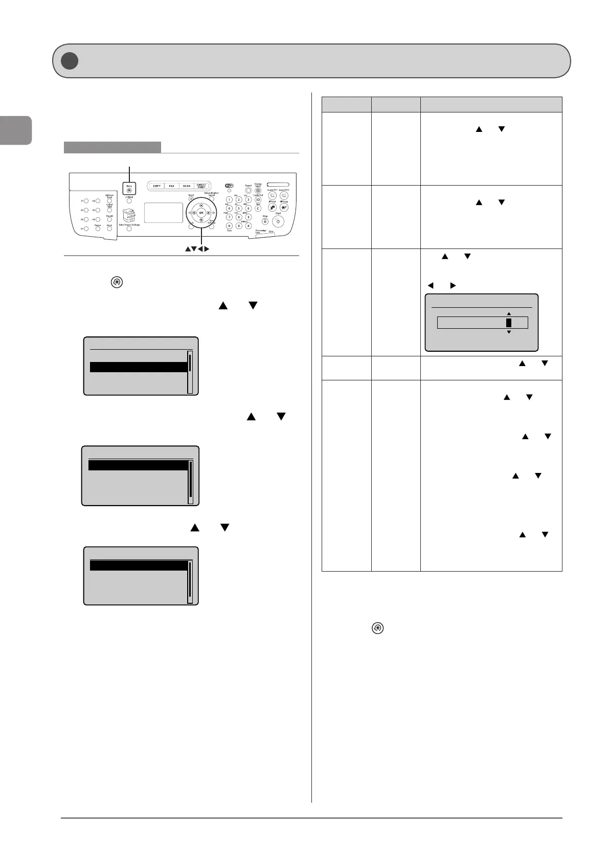4 Select the setting using [ ] or [ ] and press [OK].