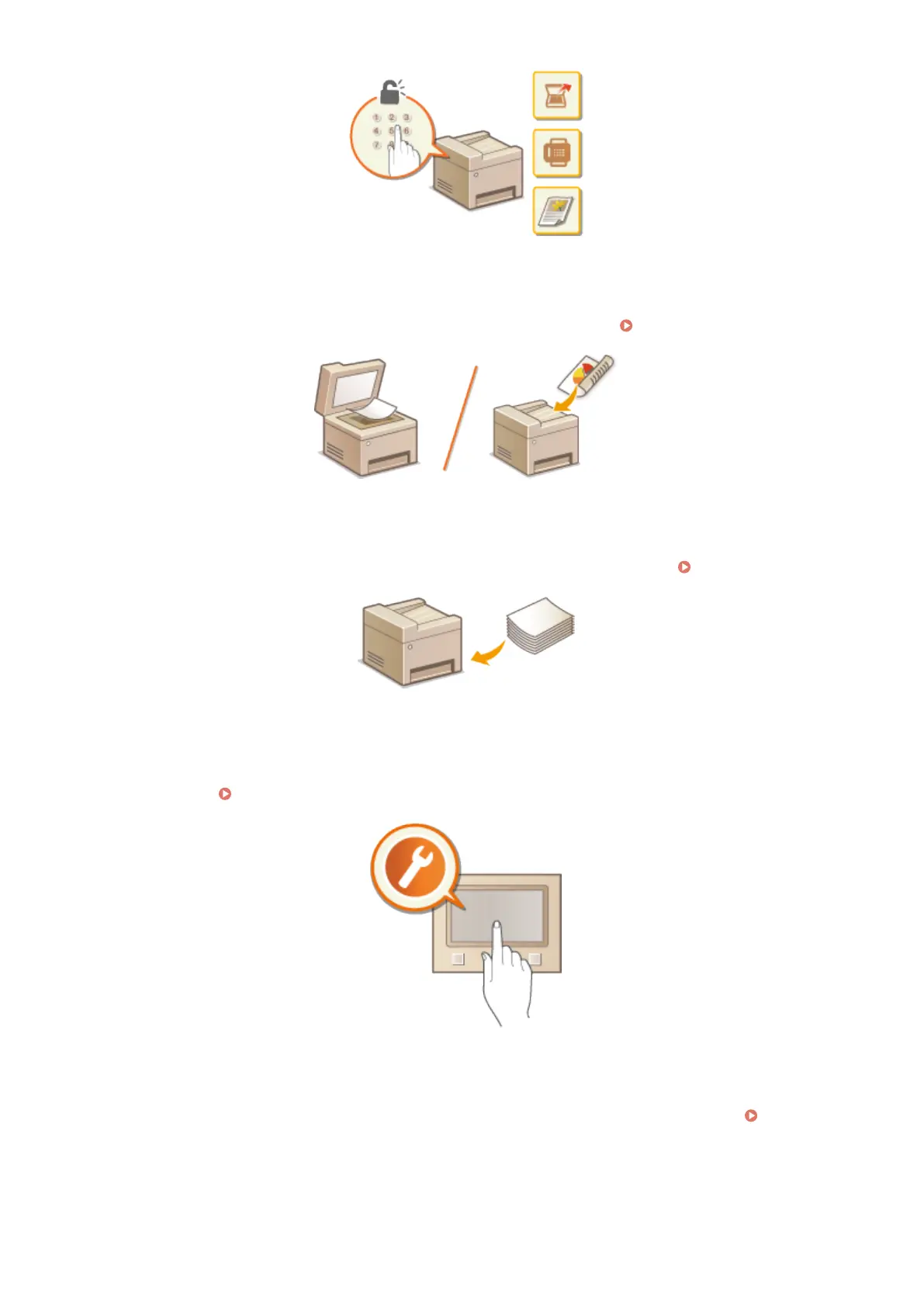 This section describes how to place originals on the platen glass and in the feeder. Placing Originals(P. 135)