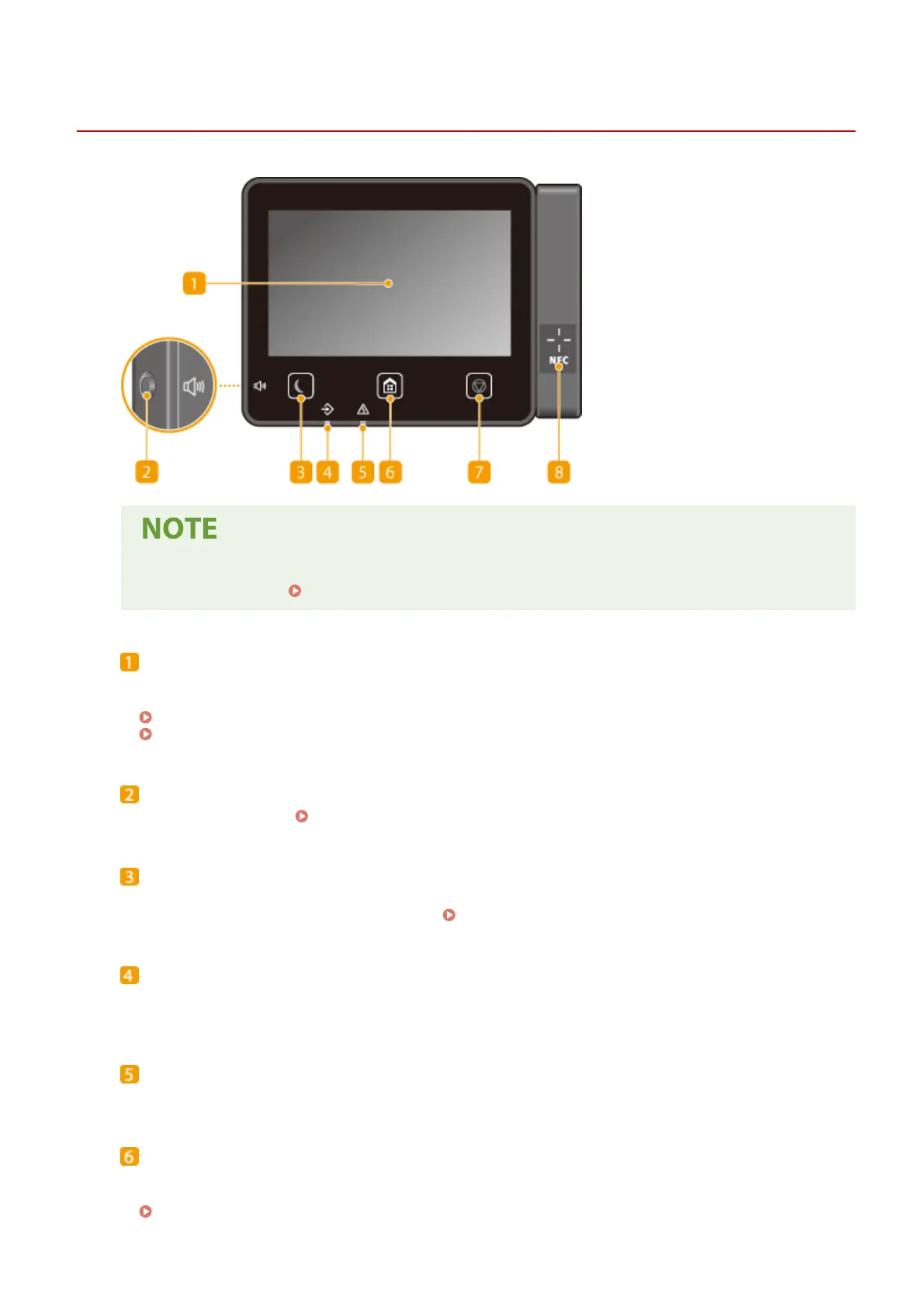 Blinks or lights up when an error such as a paper jam occurs.